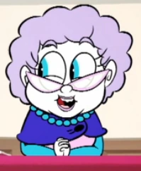 Biblia is a short, elderly woman with purple hair, a blue robe and a pink top with blue boots.