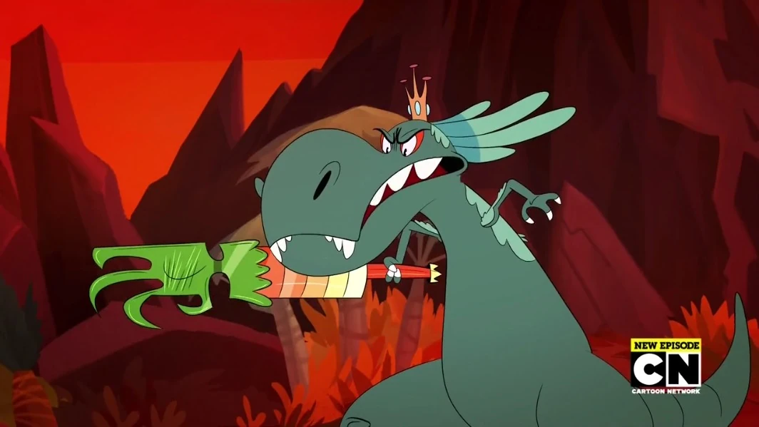 In his second appearance "Walkies", he senses the sound of Jurassi's laughter while performing a hobby to calm his nerves. He knew immediatley that it the Warriors were behind it. As he chased them, and took Jurassi back, as it seemed he was gonna kill them, he gives them a huge sack of gems and thanks them for watching Jurassi for him citing that he's a handful. He then leaves and tells them to never come back to the Dinosaur Kingdom again.